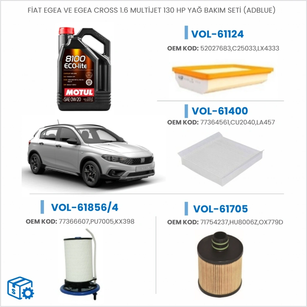 FİAT EGEA 1.3 MULTİJET EURO 6 MOTOR ADBLUE YAĞ BAKIM SET