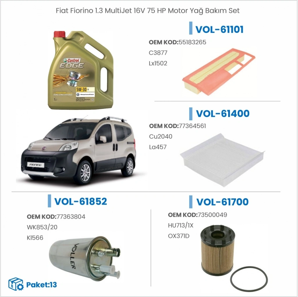 Fiat Fiorino 1.3 MultiJet 16V 75 HP Motor Yağ Bakım Seti