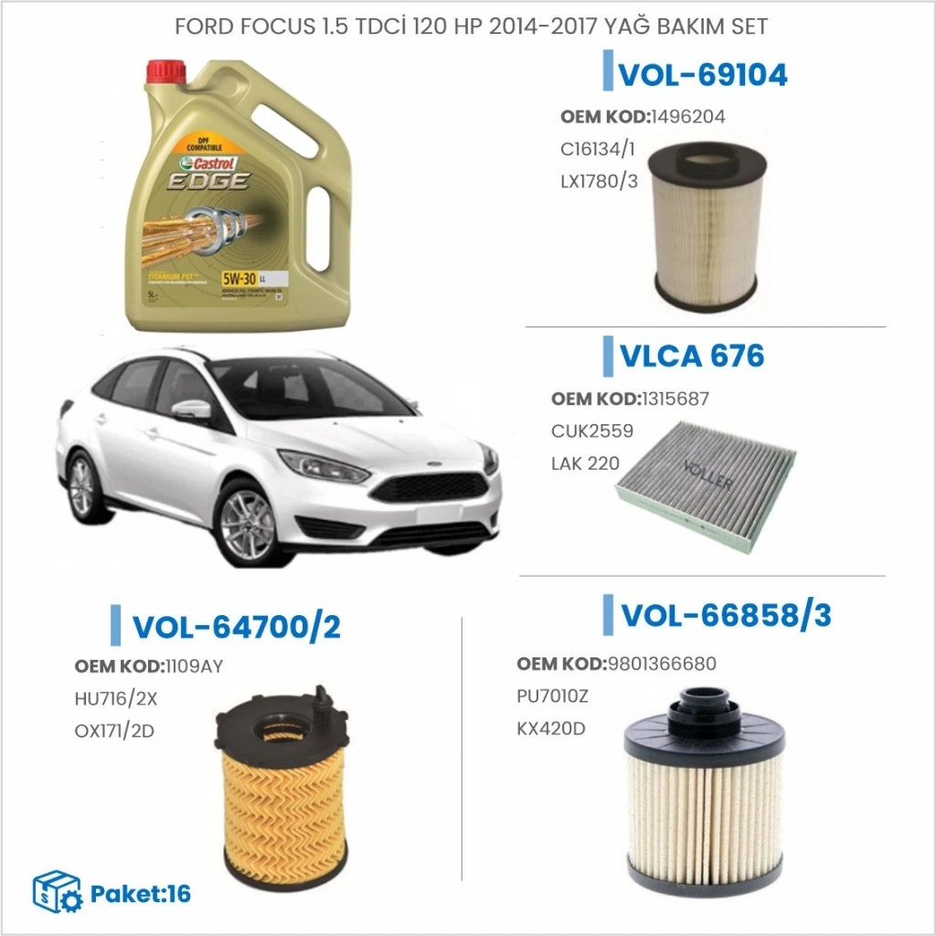 FORD FOCUS 1.5 TDCİ 120 HP 2014-2017 YAĞ BAKIM SETİ