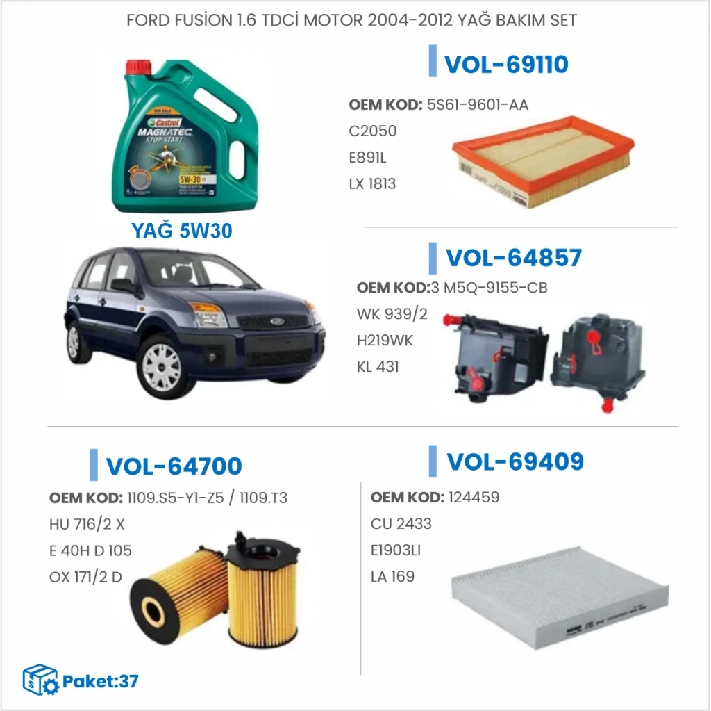 FORD FUSİON 1.6 TDCİ MOTOR 2004-2012 YAĞ BAKIM SETİ