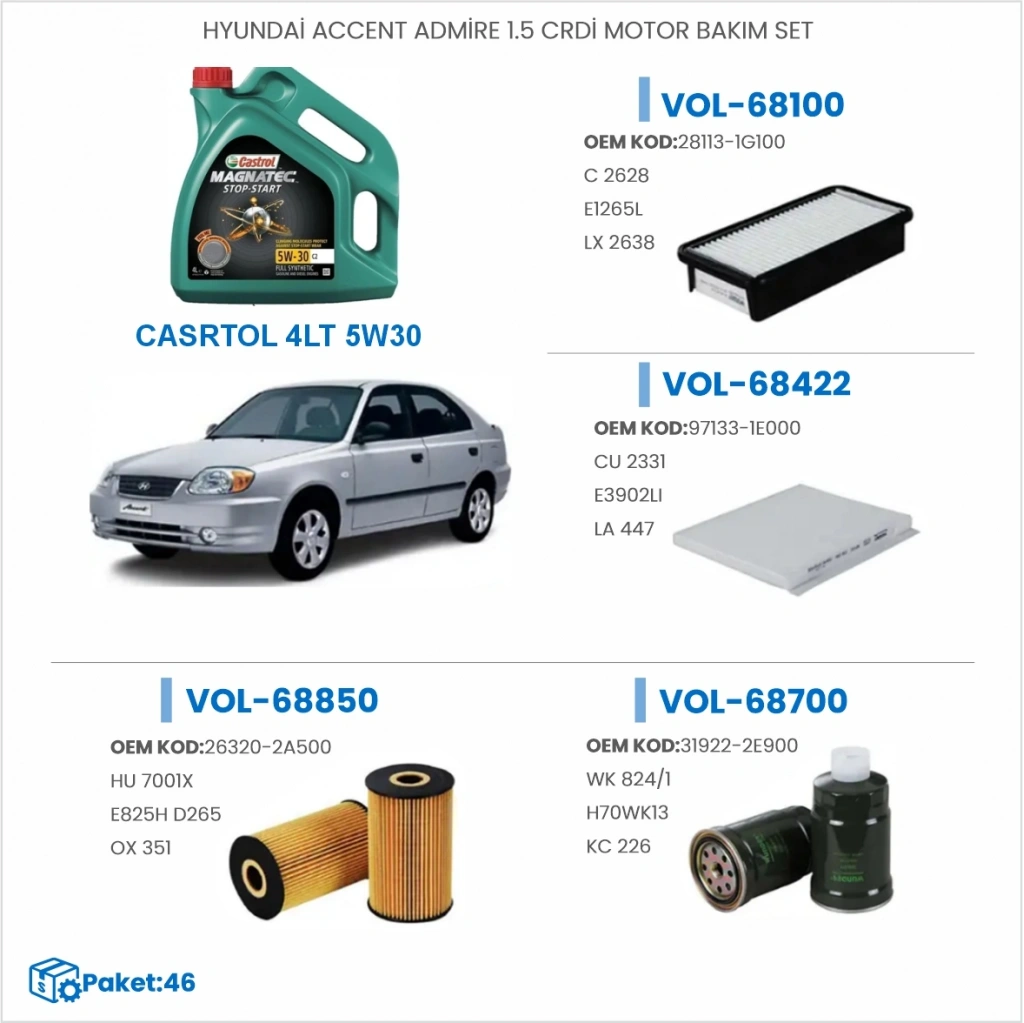 HYUNDAİ ACCENT ADMİRE 1.5 CRDİ MOTOR BAKIM SETİ