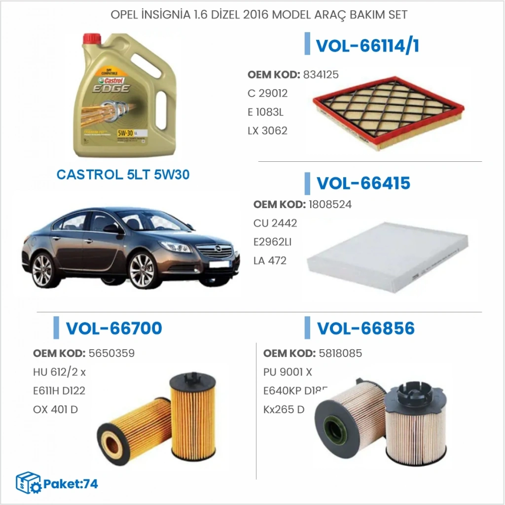 OPEL İNSİGNİA 1.6 DİZEL 2016 MODEL ARAÇ BAKIM SETİ