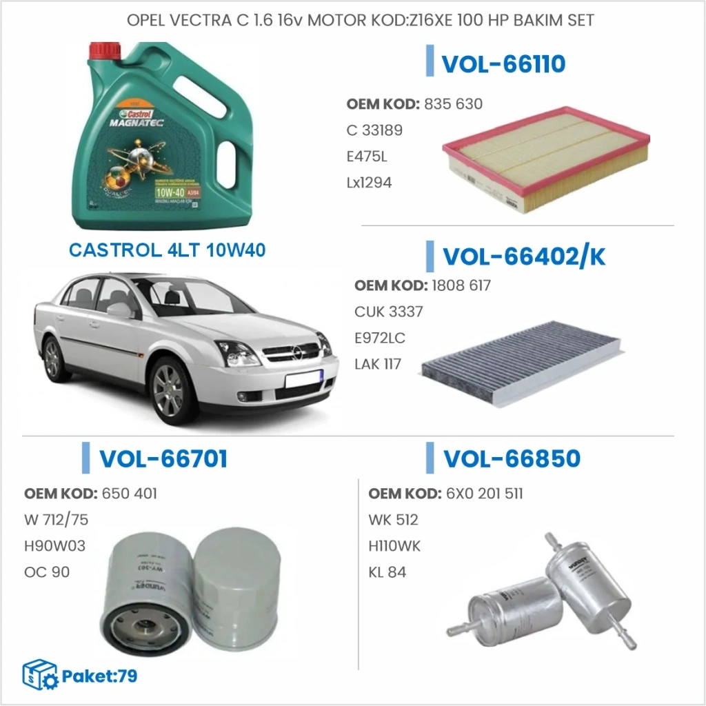 OPEL VECTRA C 1.6 16v MOTOR KOD:Z16XE 100 HP BAKIM SETİ