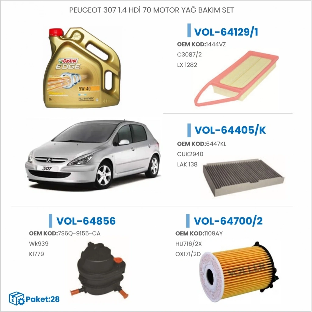 PEUGEOT 307 1.4 HDİ 70 HP MOTOR YAĞ BAKIM SETİ