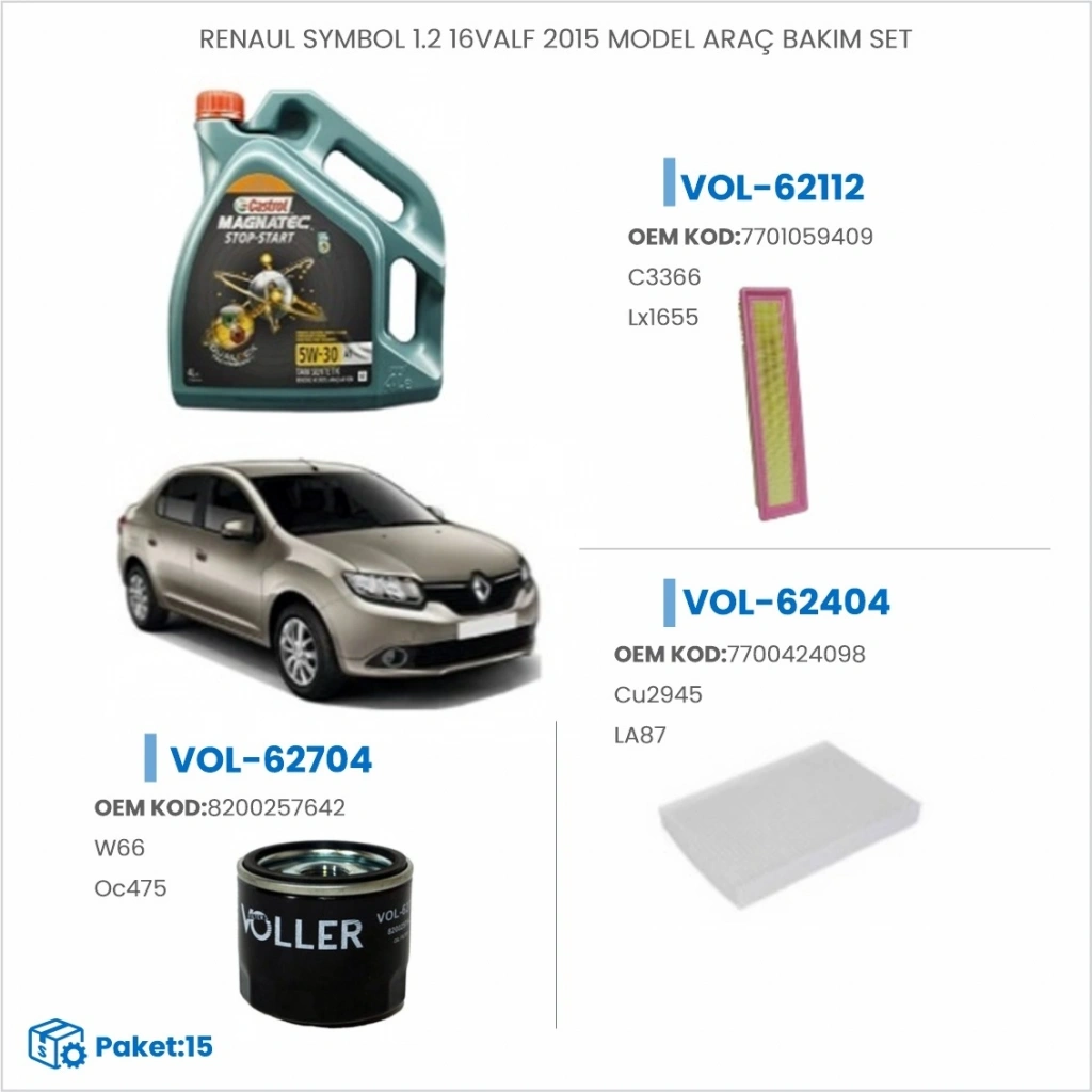 RENAUL SYMBOL 1.2 16VALF 2015 MODEL ARAÇ BAKIM SETİ
