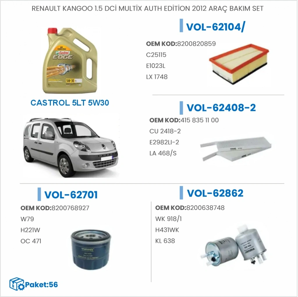 RENAULT KANGOO 1.5 DCİ MULTİX AUTH EDİTİON 2012 ARAÇ BAKIM SETİ