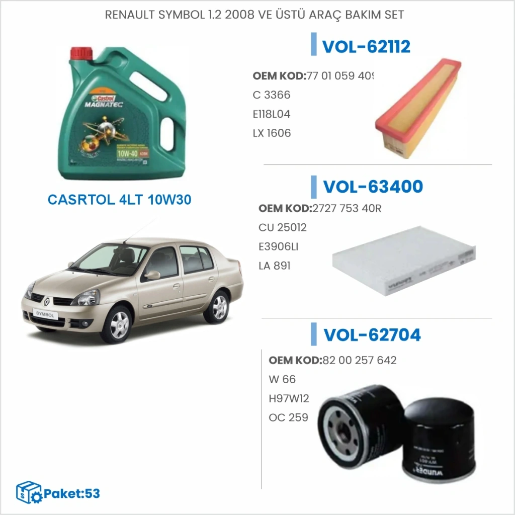 RENAULT SYMBOL 1.2 2008 VE ÜSTÜ ARAÇ BAKIM SETİ