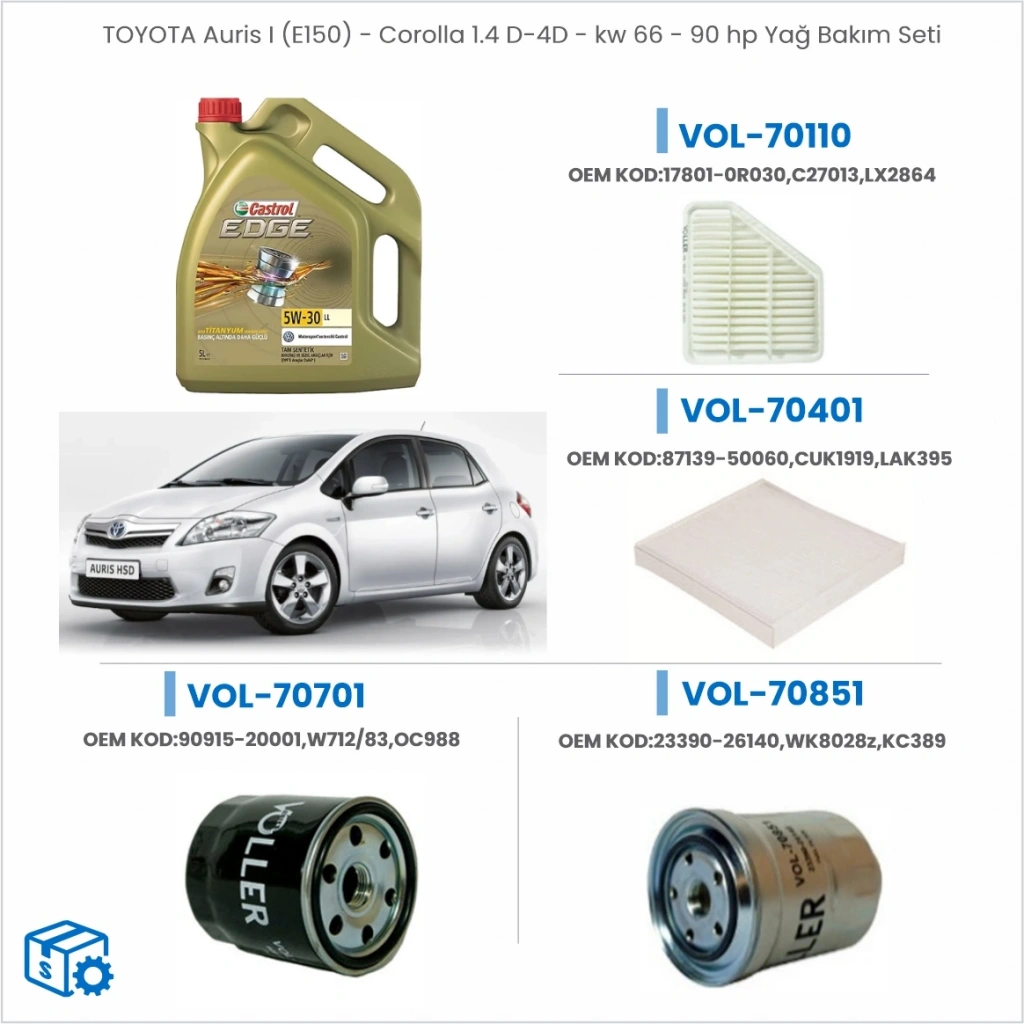 TOYATA Aurıs I (E150)- Coralla 1.4 D-D4-KW 60-99 hp Yağ Bakım Seti